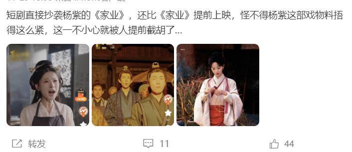 看到这样的情况,网友们非常不理解,如果《家业》播出后,短剧进行照搬,这是很正常的事情,大家也都比较理解,结果《家业》还没播出,短剧先出现了,这直接引起反感。